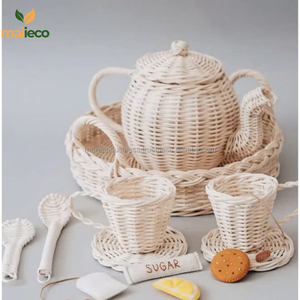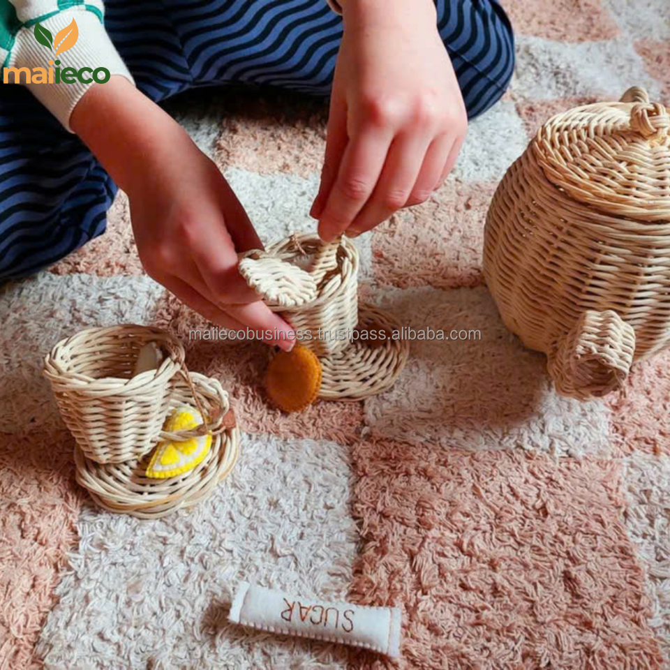 Service à thé en rotin naturel fait à la main Little Sippers Collection-Jouet pour bébé de 5 à 7 ans Produit en gros fabriqué au Vietnam