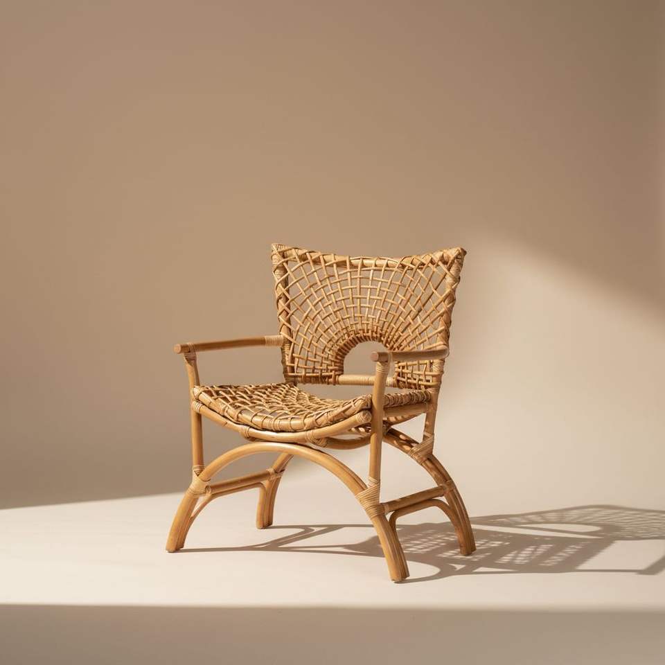 Fauteuil lounge en rotin naturel tissé à la main, bambou écologique, dossier solide moderne, garantie 1 an, salon, patio, café