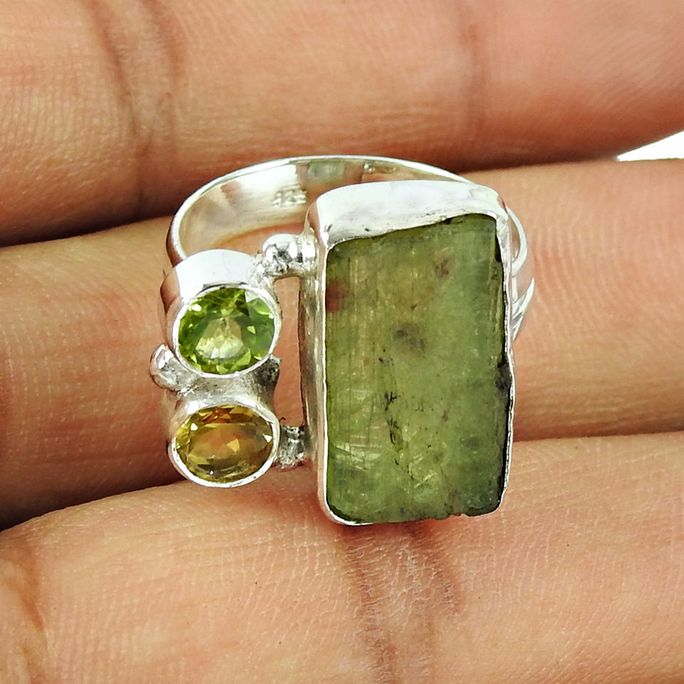Bague de mariage en argent sterling faite à la main, prehnite, péridot, pierre précieuse, en gros, cadeau d'anniversaire, bijoux