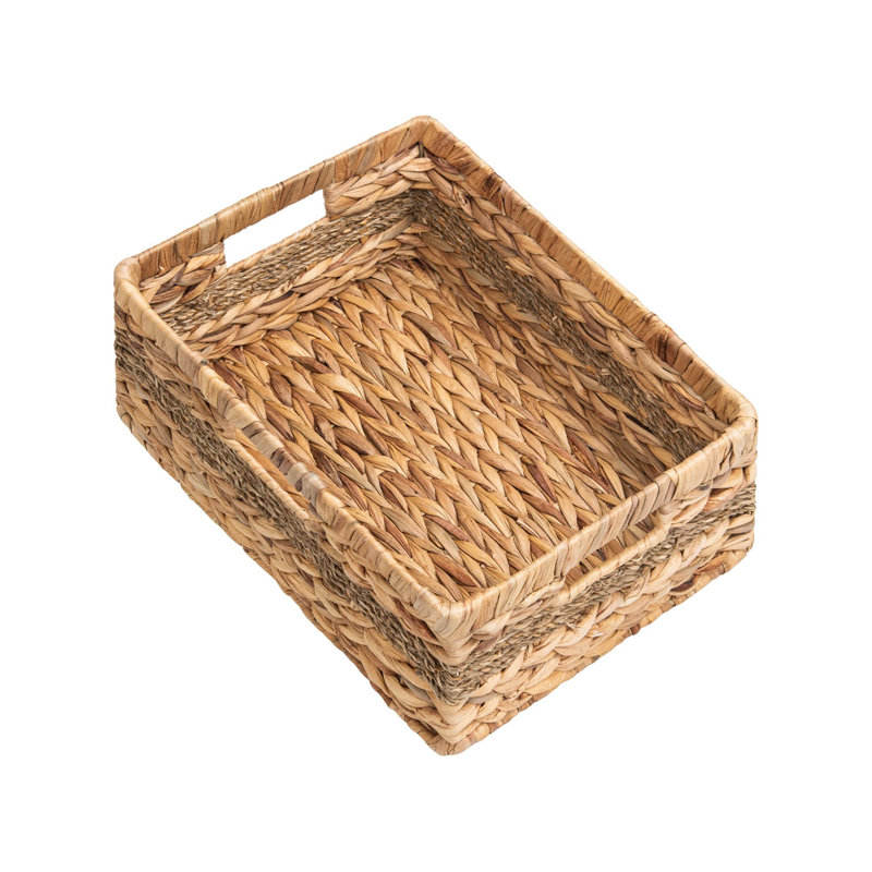 Handmade Natural Seagrass and Water Hyacinth Storage Basket with Durable Frame and Handles
