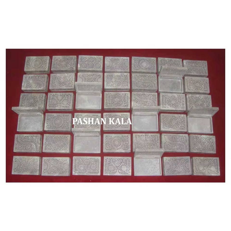 Boîte de rangement de bijoux de forme rectangulaire en stéatite naturelle sculptée à la main pour un cadeau d'affaires importateur et exportateur indien