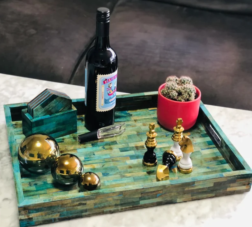 Plateau de service rectangulaire en bois naturel fait main avec design élégant en os Plusieurs tailles Ustensiles de cuisine jetables pour la maison