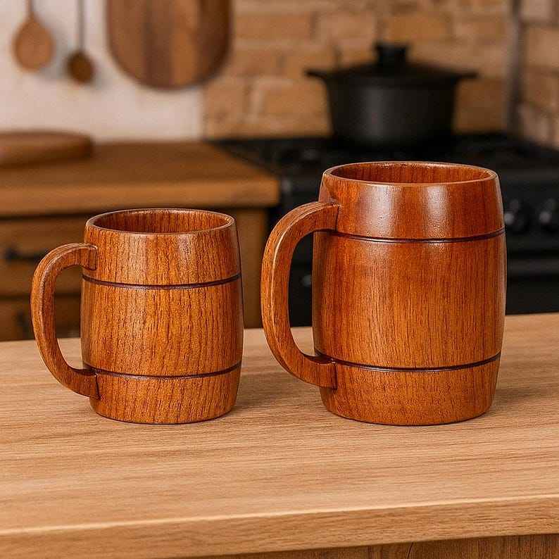 Handmade Polished Natural Wood Travel Mug Eco-Friendly for Coffee Tea and Beer Beverages Holiday Decoration & Gift