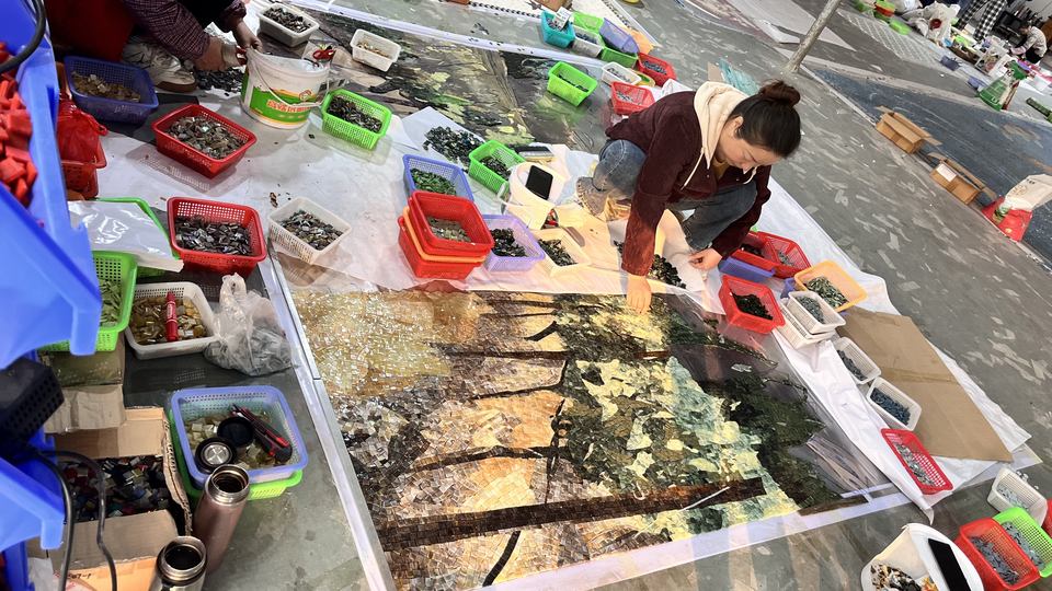 Mosaïque murale artisanale en pierre naturelle et verre, motif arbres, pour la décoration de villas et de maisons