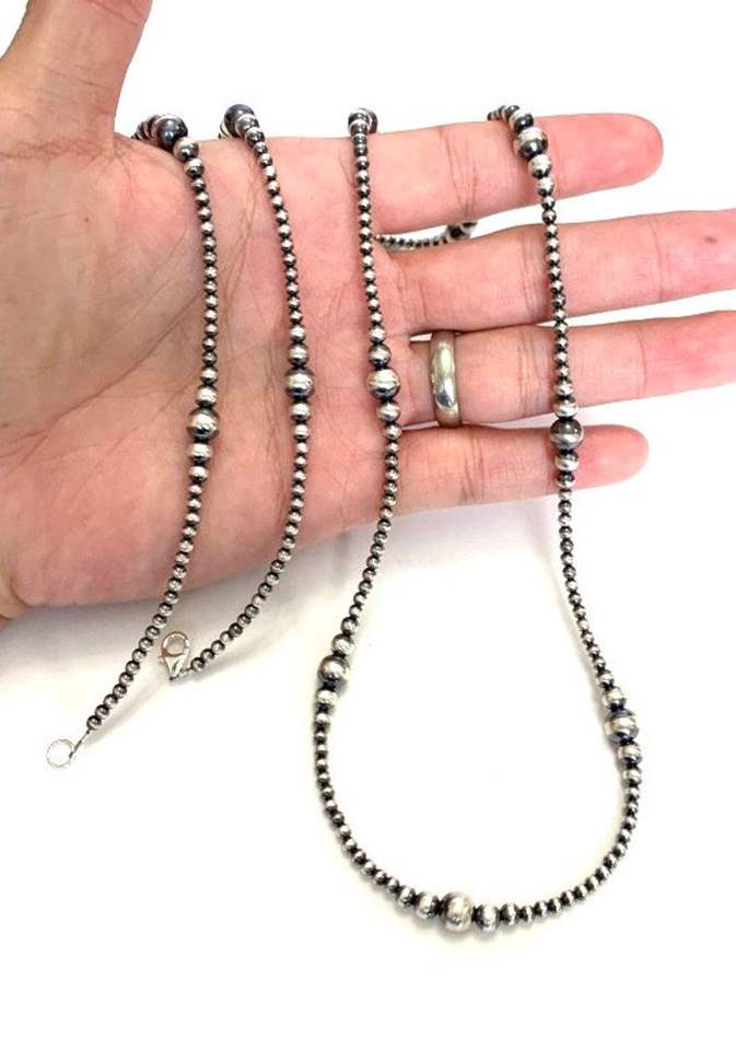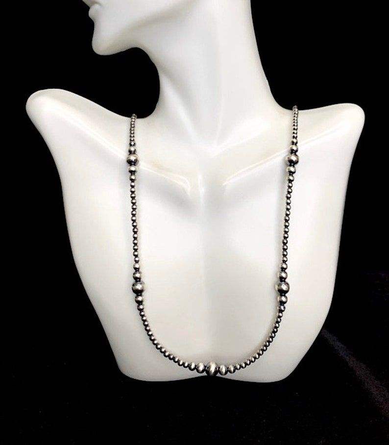 Handmade Navajo Pearl Sterling Silver Beads Necklace 16 To 40 Inch Long Elegant Jewelry Gift For Women