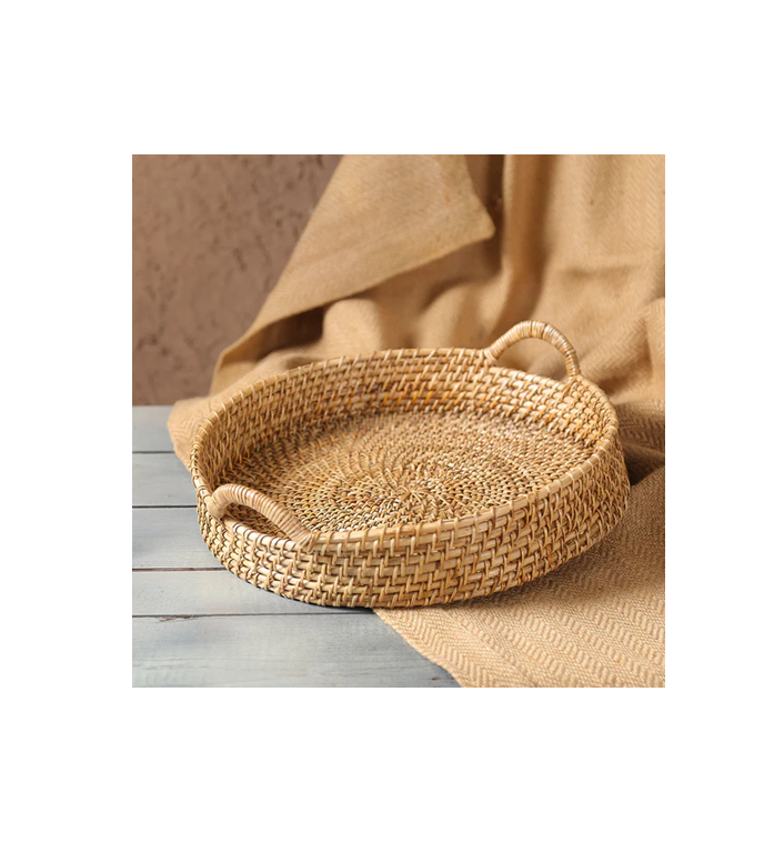 Plateau artisanal en rotin, style bohème, pour la maison, le bureau, le rangement de livres et de pots de fleurs, et la décoration.