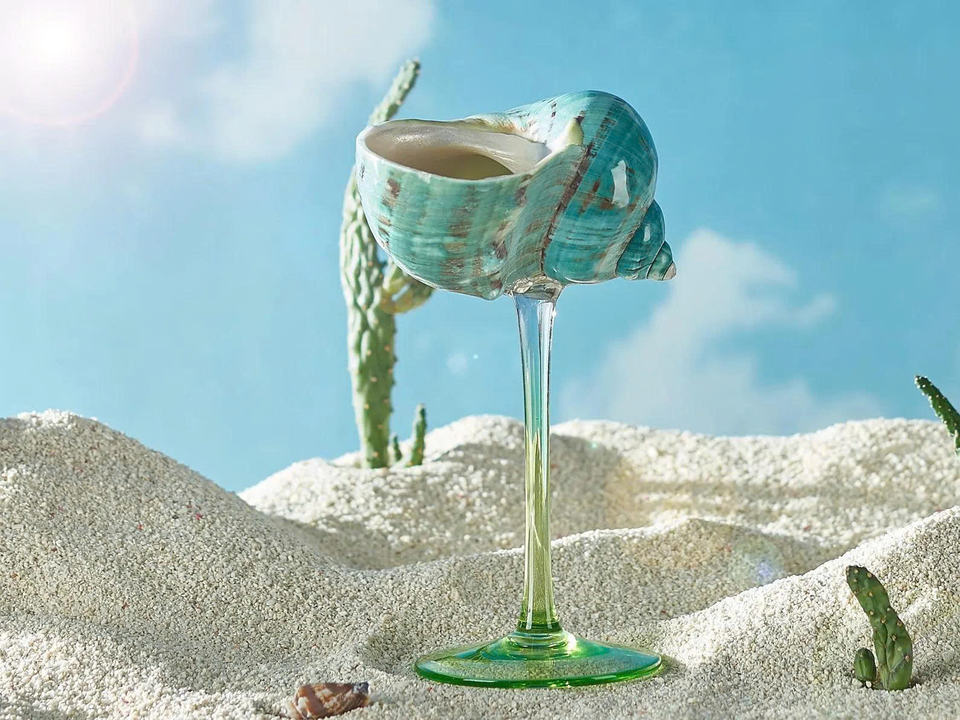 Verre à vin artisanal en coquille de conque nordique, coupe à champagne en coquillage naturel, vaisselle de bar de luxe côtier, cadeau unique pour elle - Violet