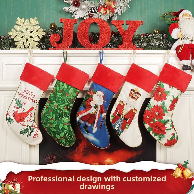 Chaussettes de Noël faites à la main avec motif casse-noisette, grand sac à bonbons, pendentif, cadeaux pour enfants, décoration de la maison, chaussettes de Noël