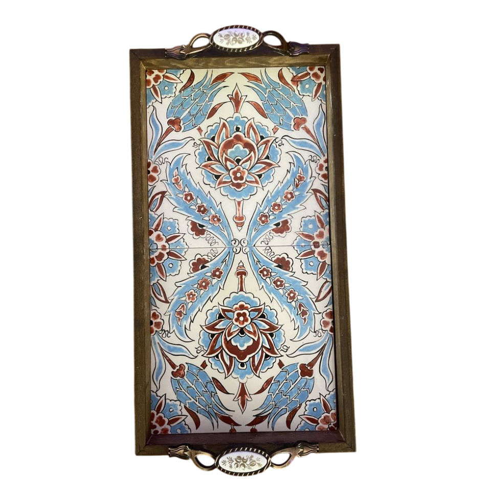 Plateau de service octogonal marocain fait main en bois avec incrustations de nacre, design géométrique, plateau décoratif à vendre