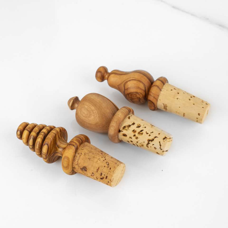 Handmade Olive Wood Bottle Stand Home Decoration Food-Grade Rustic Mediterranean Style Personalized Wedding Lids Caps Closures