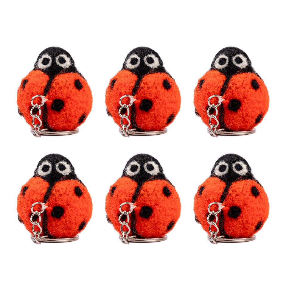 Porte-clés coccinelle orange et noir fait à la main Design décoratif en feutre mignon avec adorable porte-clés doux grands yeux pour sacs cadeaux