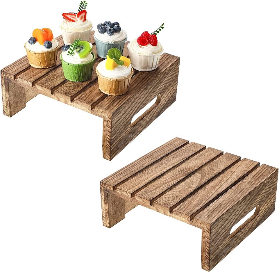 Support à gâteau en bois biologique fait à la main, conception structurée de panneaux, poignée découpée portable, présentoirs à cupcakes, outils pour gâteaux chauds
