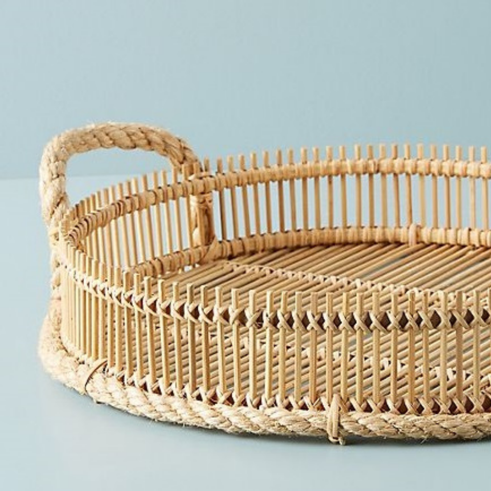 Handmade Ottoman Tray Top Serveware Bamboo Rattan Tray Pantry Organizer Home Decor Accent