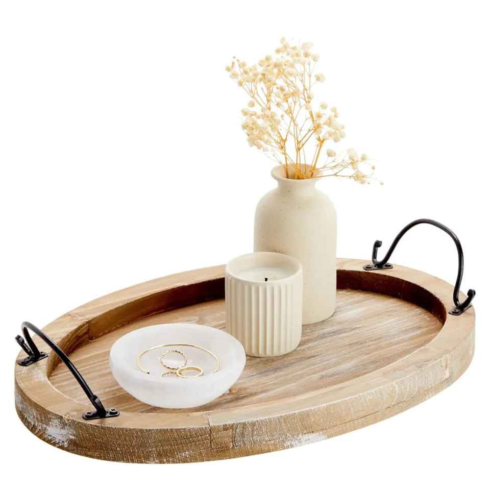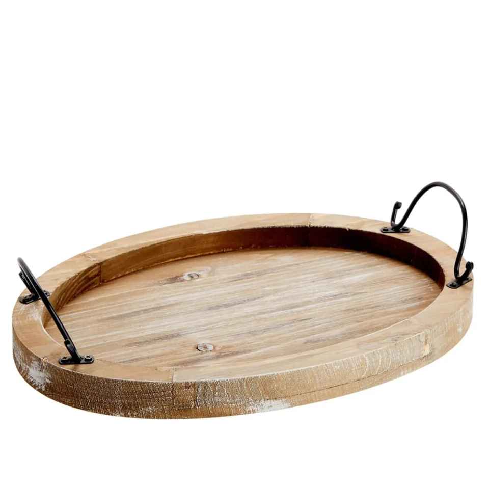 Plateau ovale en bois de manguier fait à la main avec poignées Plateau élégant pour décor de table et service de petit déjeuner