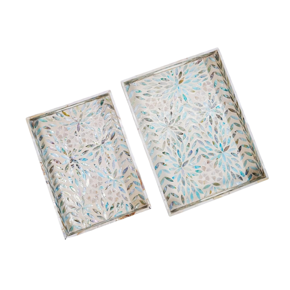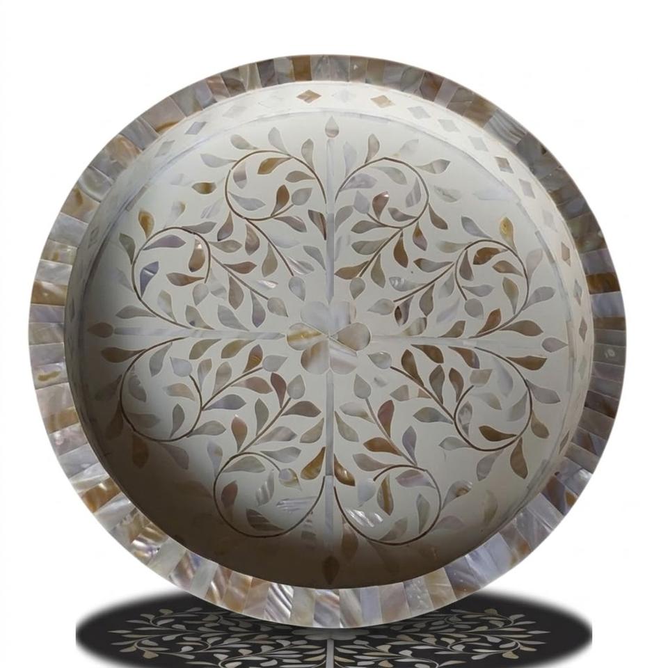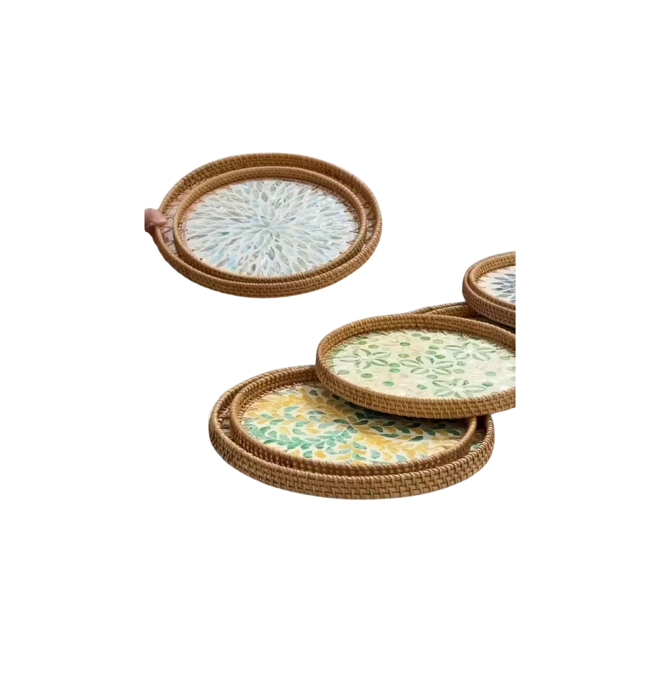 Plateau de service ovale en rotin fait main, panier naturel avec incrustation de nacre, plateau décoratif pour table basse ou ottoman, pour la décoration de la maison