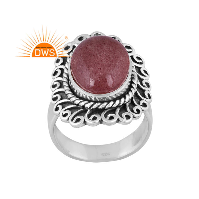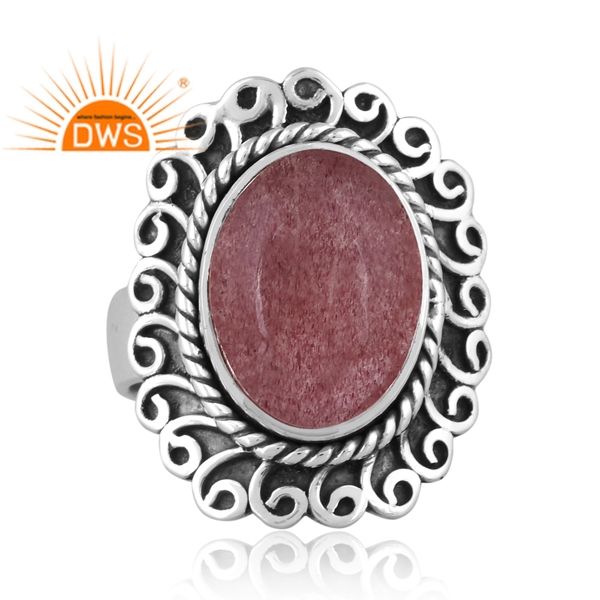 Bague en argent sterling oxydé fait à la main, en quartz fraise naturel, avec pierres précieuses, fabricant de bijoux personnalisés