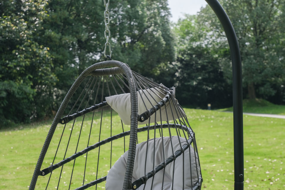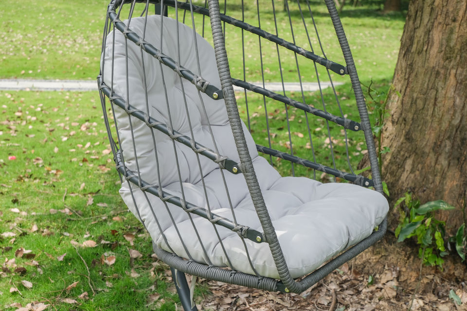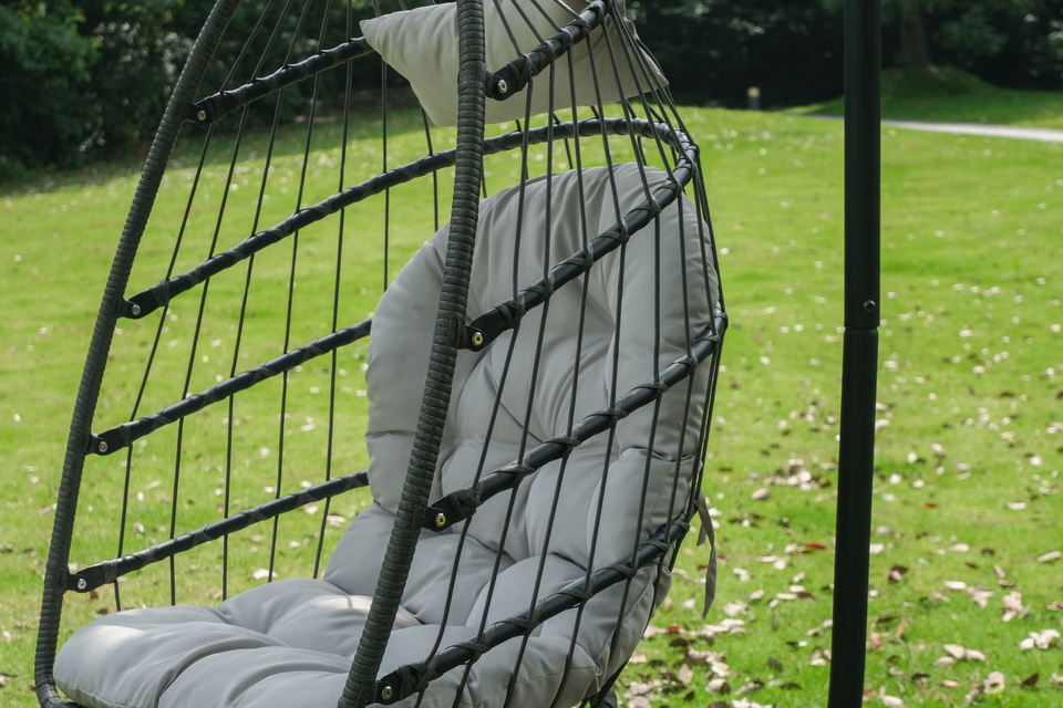 Fauteuil suspendu en rotin PE fait main avec coussin, design moderne pliable pour patio, cour, mobilier d'extérieur