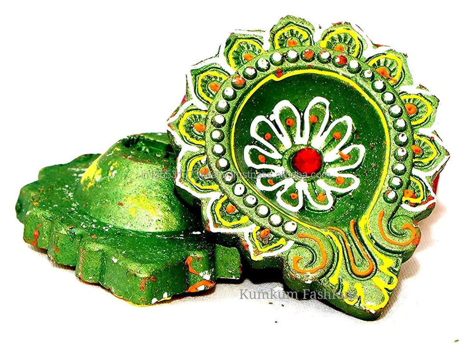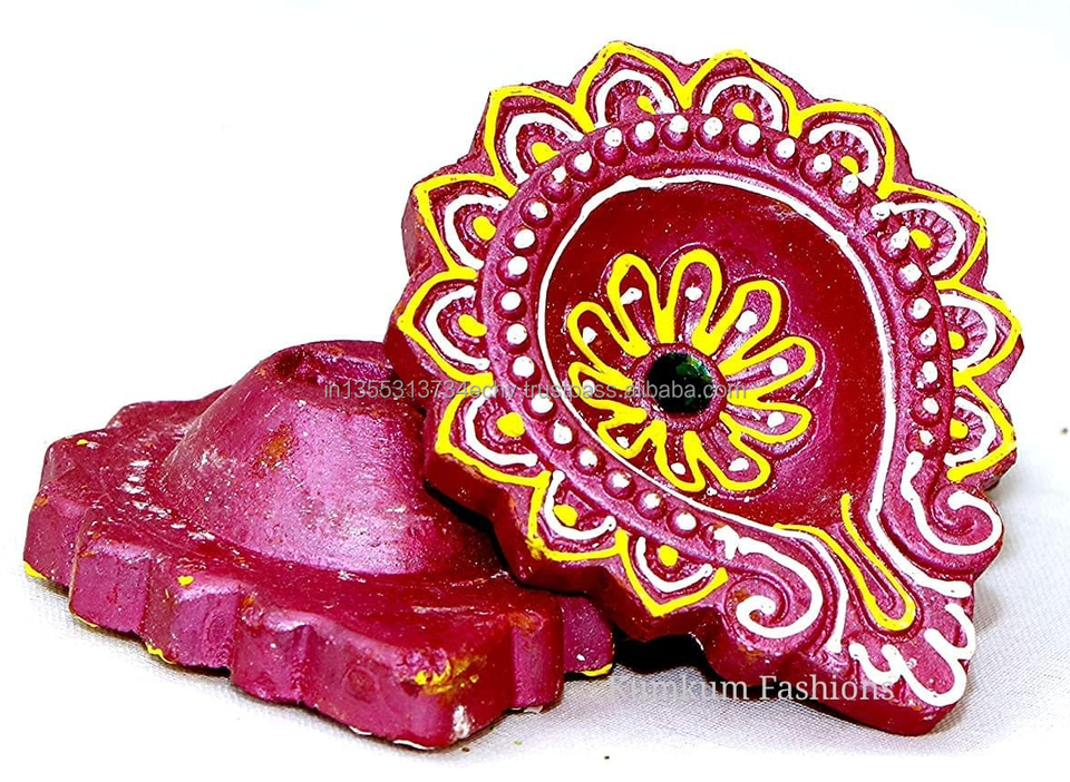 Diya en argile peinte à la main, petite décoration écologique pour la maison, pour Noël et Diwali, porte-bougie