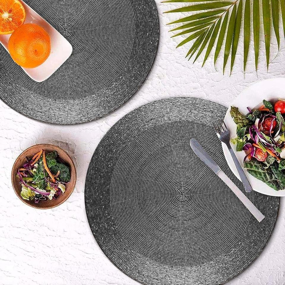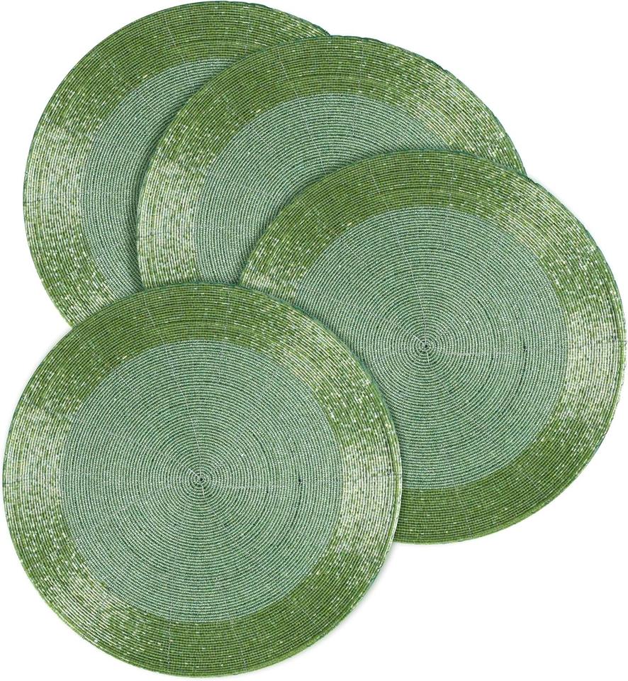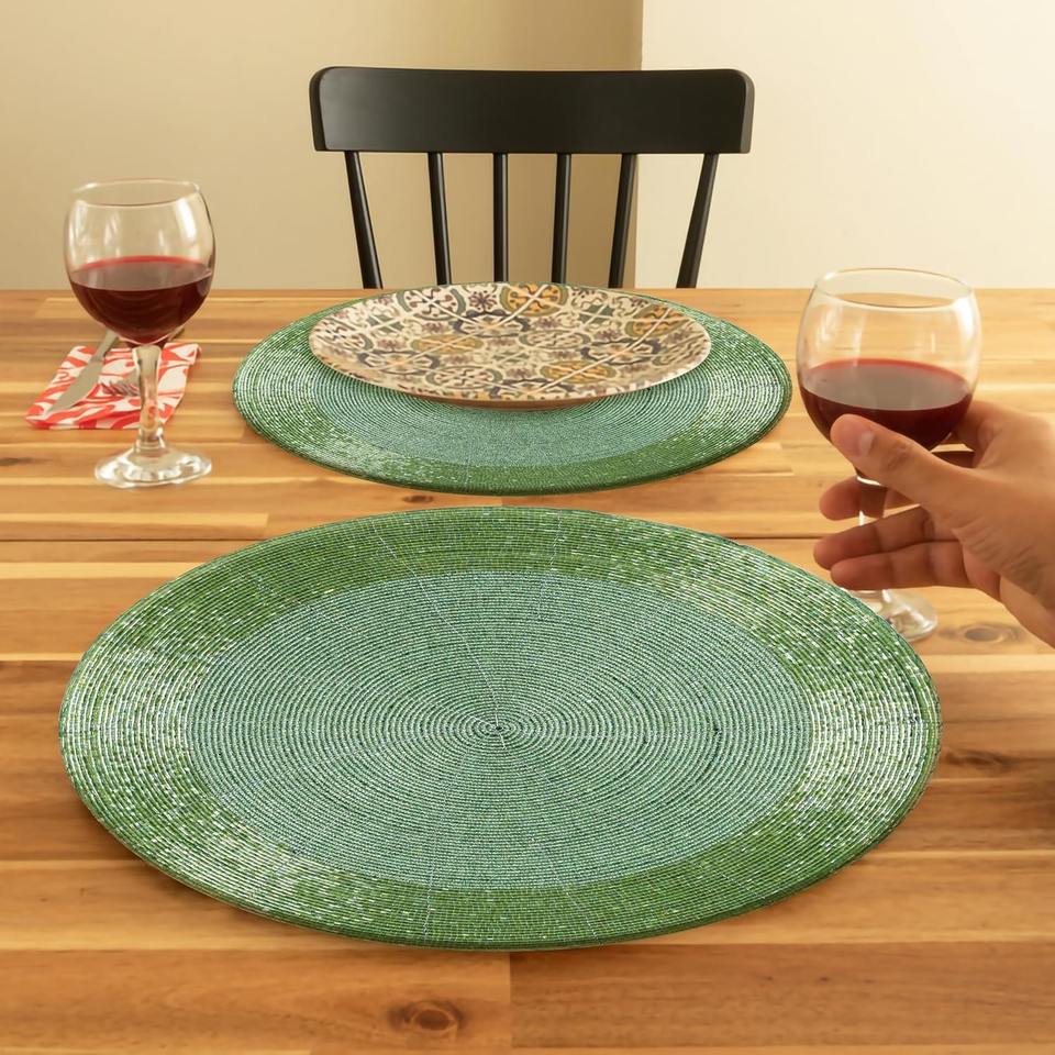 Sets de table faits à la main en perles de palmier, style bohème, décoratifs, ronds, en perles de verre, avec support en tissu