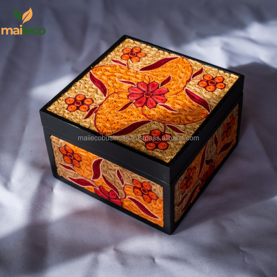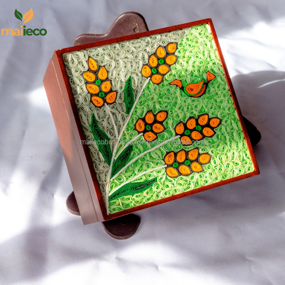 Boîte-cadeau de bijoux de Quilling de papier de motif carré fait à la main pour l'emballage de collier de bracelet de pendentif du Vietnam