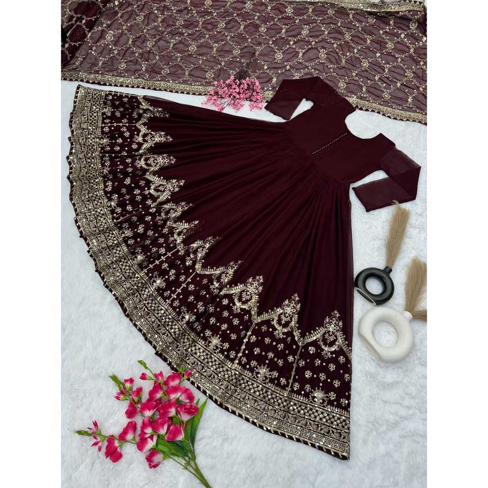 Robe de soirée faite à la main avec dupatta brodé, silhouette trapèze, taille empire, ornée de sequins sur tissu organza