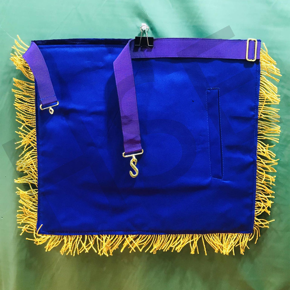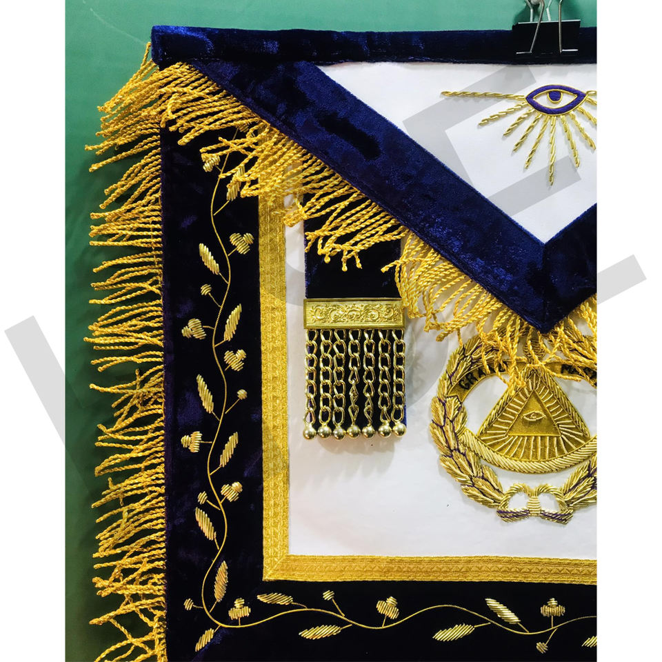 Tablier maçonnique artisanal de Grand Maître en velours violet avec broderie en fils dorés et franges – Régalia maçonnique