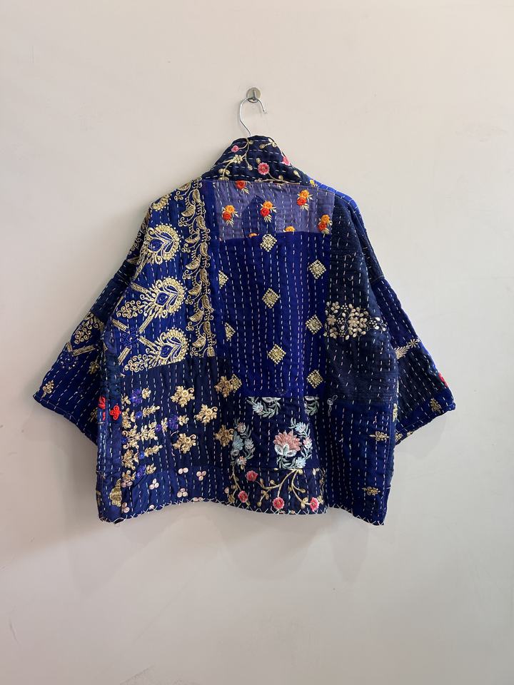 Veste courte en patchwork Kantha faite à la main pour femmes, manteau bohème vintage, veste matelassée