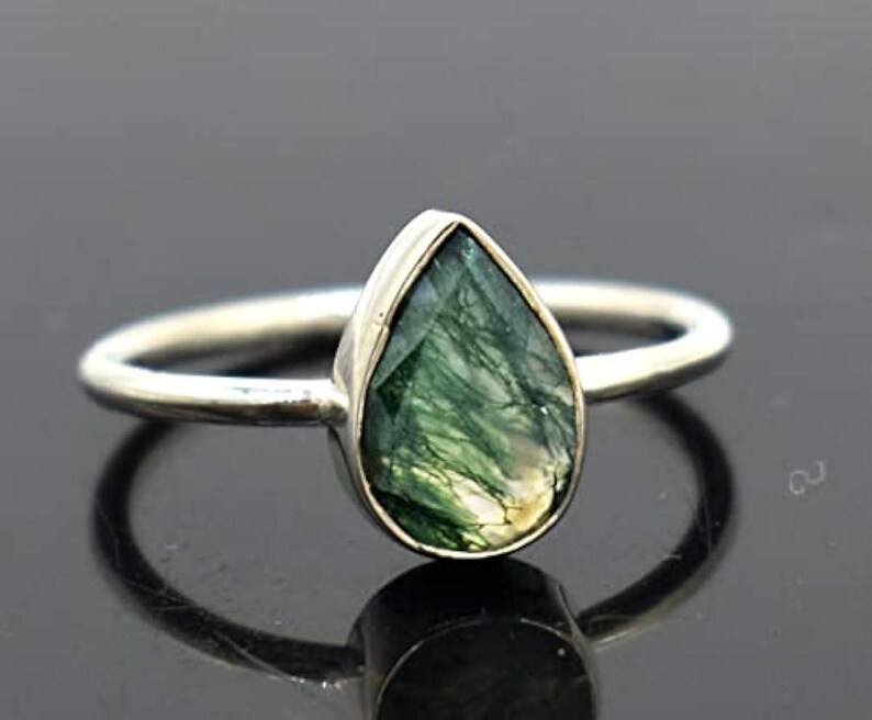 Bague en agate de mousse de poire faite à la main, argent sterling 925, bijoux bohèmes, cadeau élégant pour femmes, bague en pierre précieuse unique