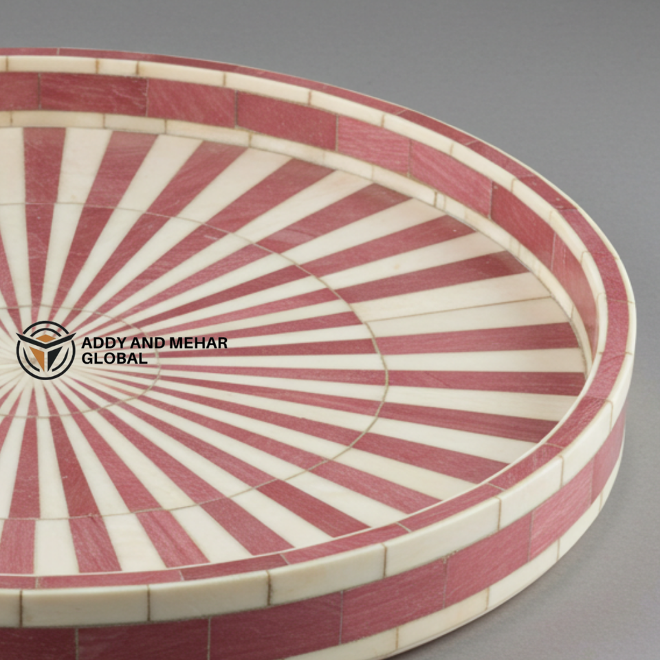 Plateau de rangement rond et plateau de service en résine rose et blanche fait à la main pour la cuisine et le bureau
