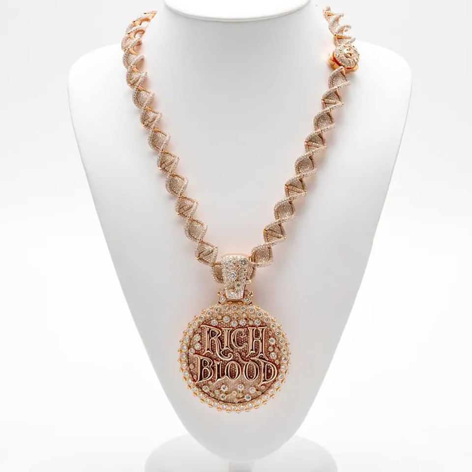 Pendentif en diamant plaqué or rose VVS Moissanite glacé fait à la main bijoux en argent sterling 925 pendentif Hip Hop Ciecle
