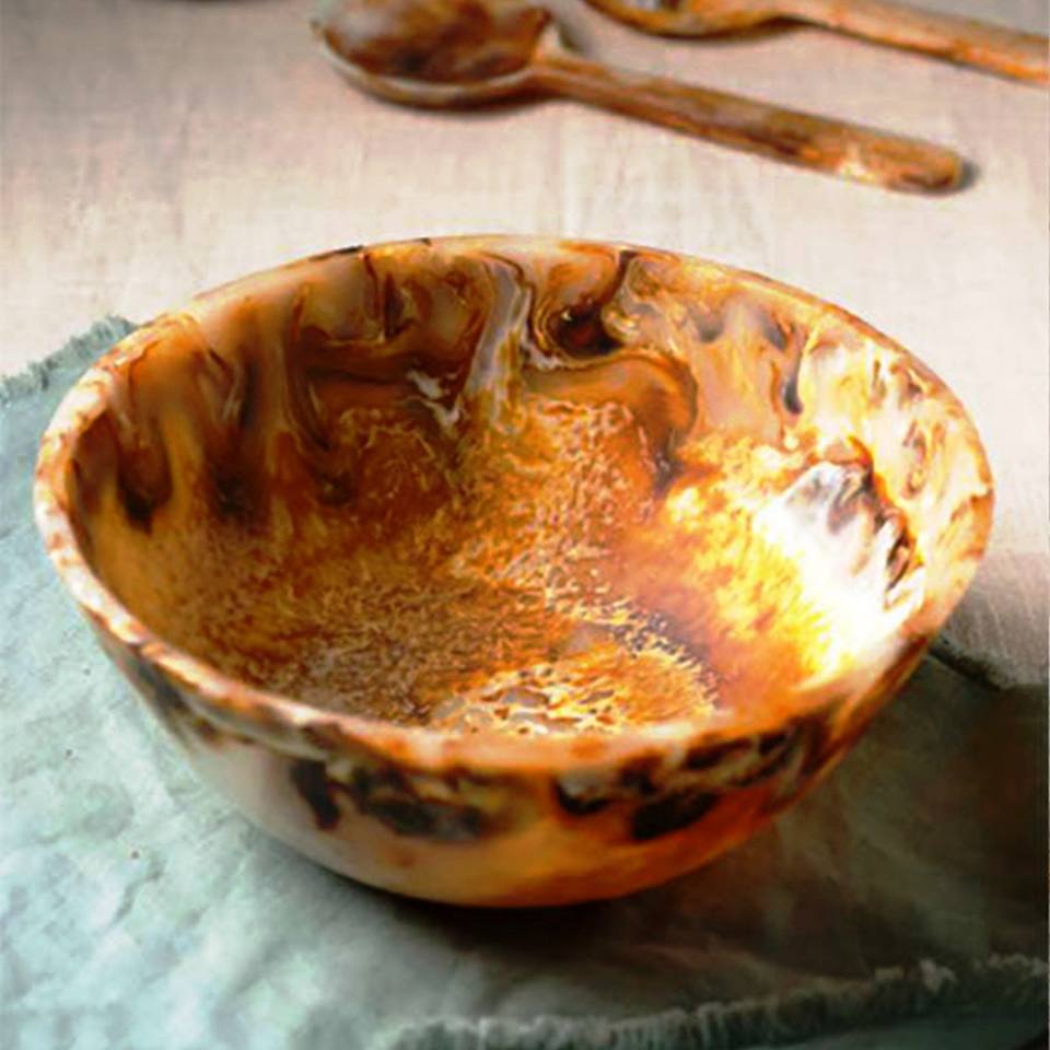 Bol en résine marron et blanc à effet tourbillon, finition brillante, lisse, fait à la main, écologique, passe au lave-vaisselle, vaisselle décorative pour les fêtes et la cuisine