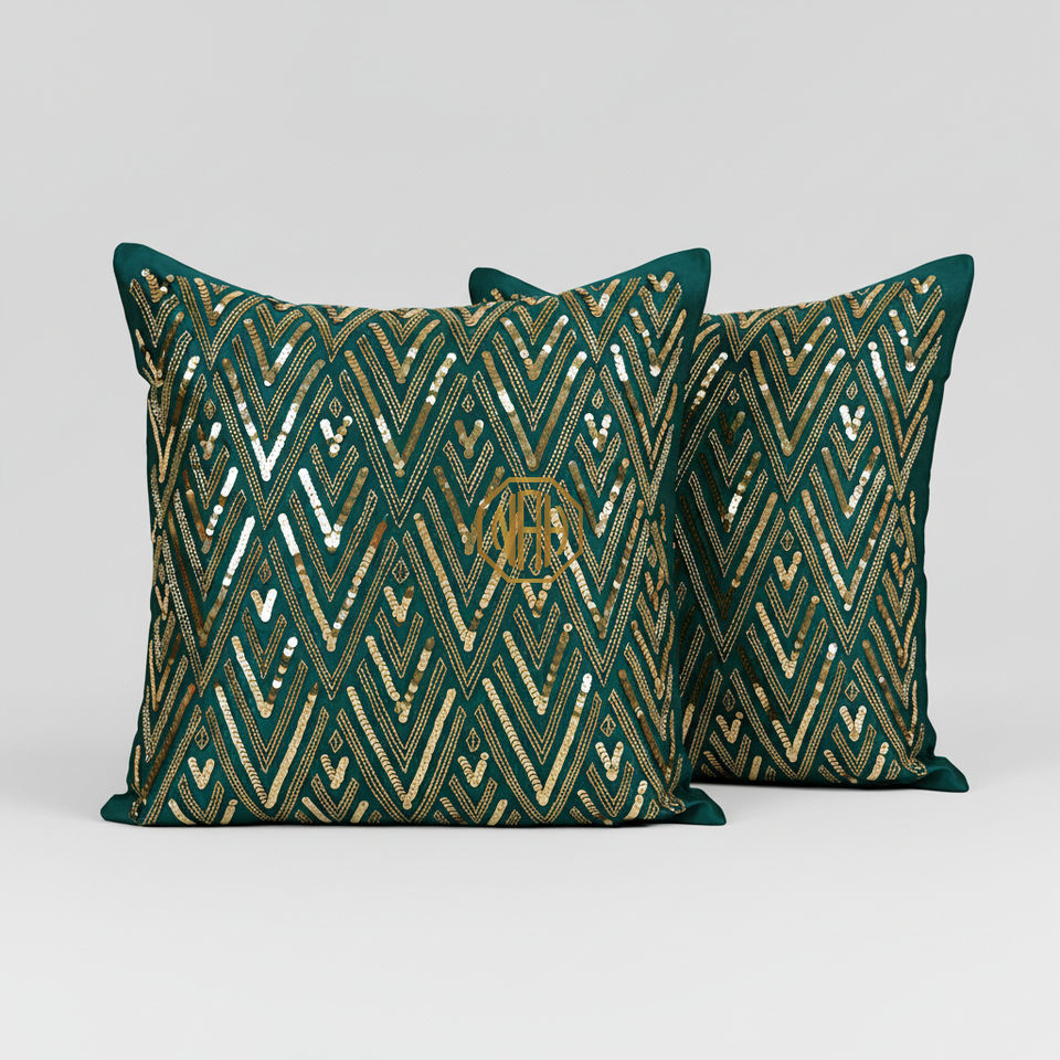 Housse de coussin carrée en polyester faite à la main avec motif brodé perlé et imprimé, taie d'oreiller décorative pour canapé