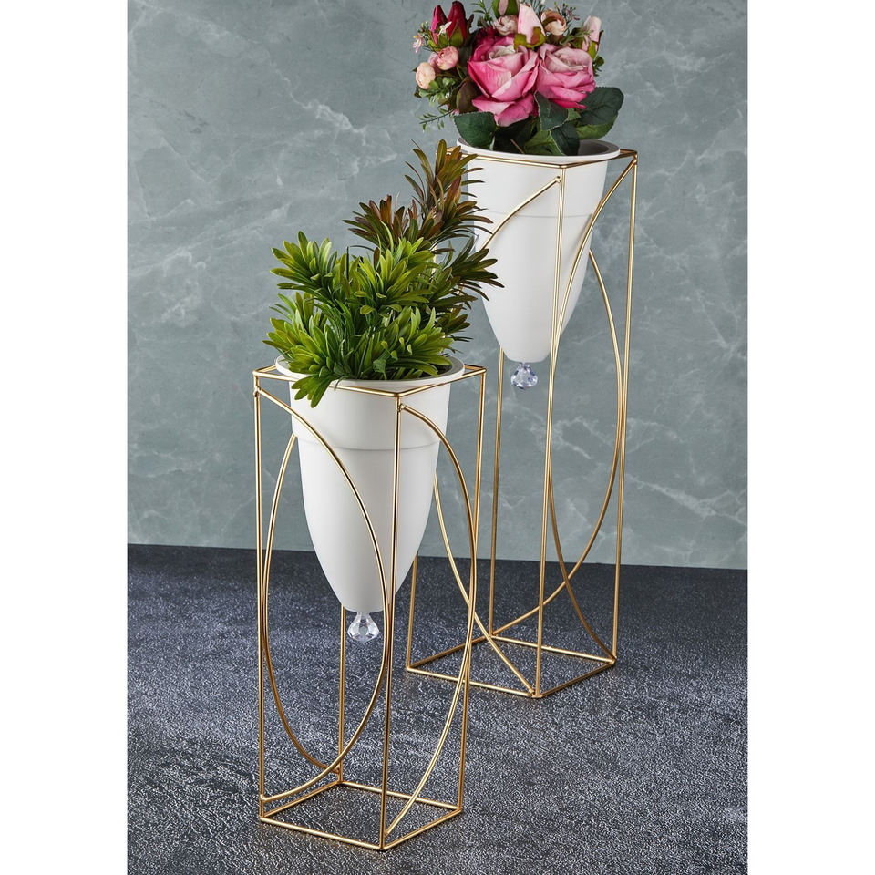 Jardinières en métal peintes à la poudre faites à la main avec support, rondes, pour l'intérieur et l'extérieur, pour la décoration de la maison et du jardin