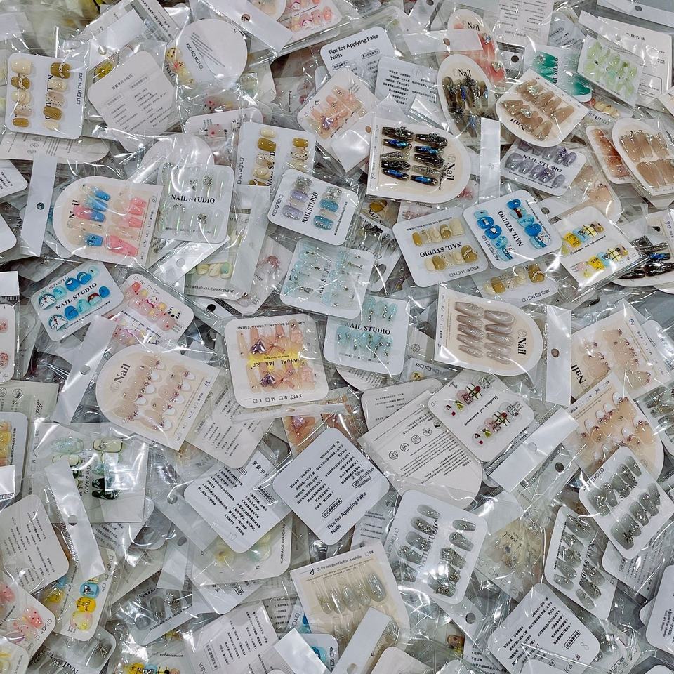 Vente de liquidation d'usine de faux ongles pré-conçus faits à la main, styles aléatoires en direct, faux ongles portables en gros, doigts ciel étoilé