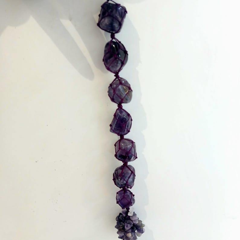 Carillon à vent en cristal d'améthyste de qualité supérieure fait à la main avec des pierres de palmier polies et un pompon 15-20 cm Décoration d'intérieur Feng Shui
