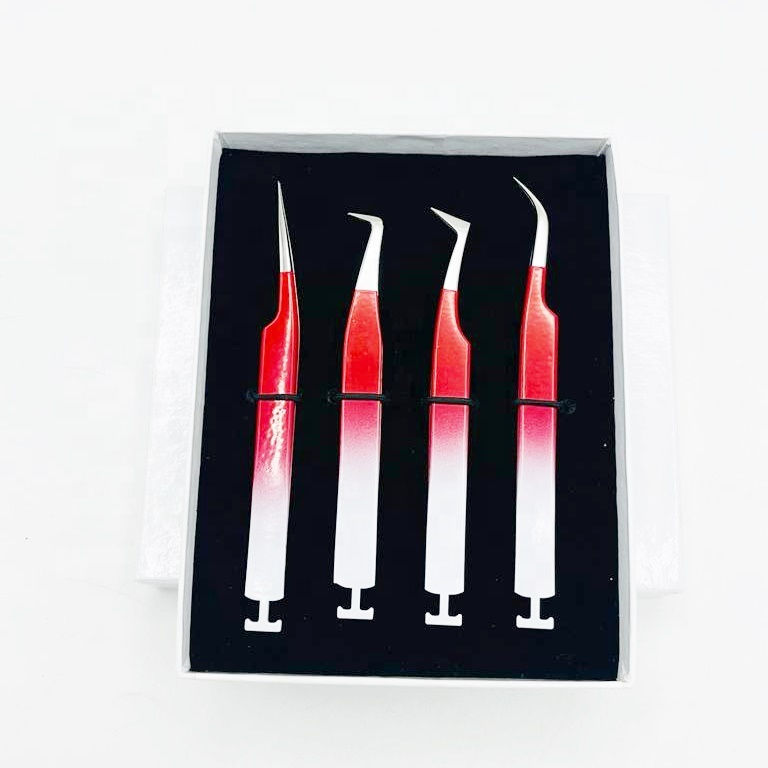 Pince à épiler d'extension de cils en acier inoxydable solide de qualité supérieure faite à la main poignée confortable diamant deux tons couleur lisse