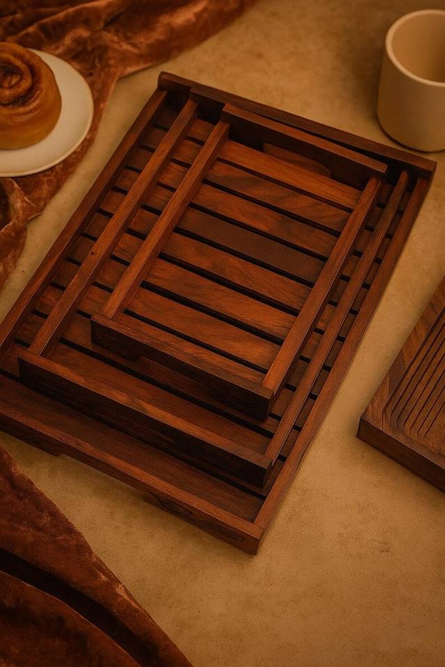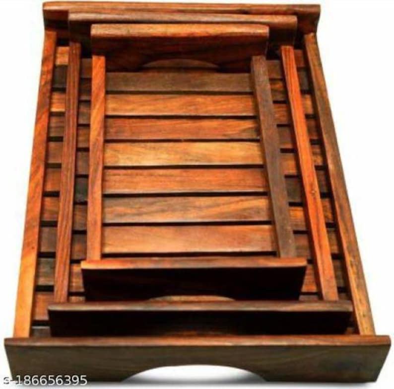 Ensemble de plateaux en bois de Sheesham de qualité supérieure, faits à la main, style rustique indien, écologiques, pour la cuisine et la table