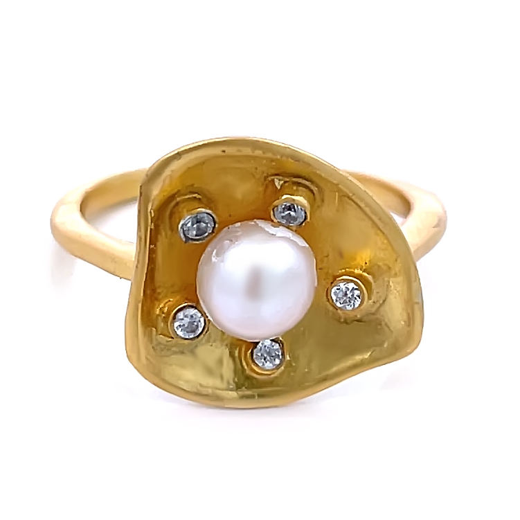 Nom du produit:Bague plaquée or avec perle et CZ