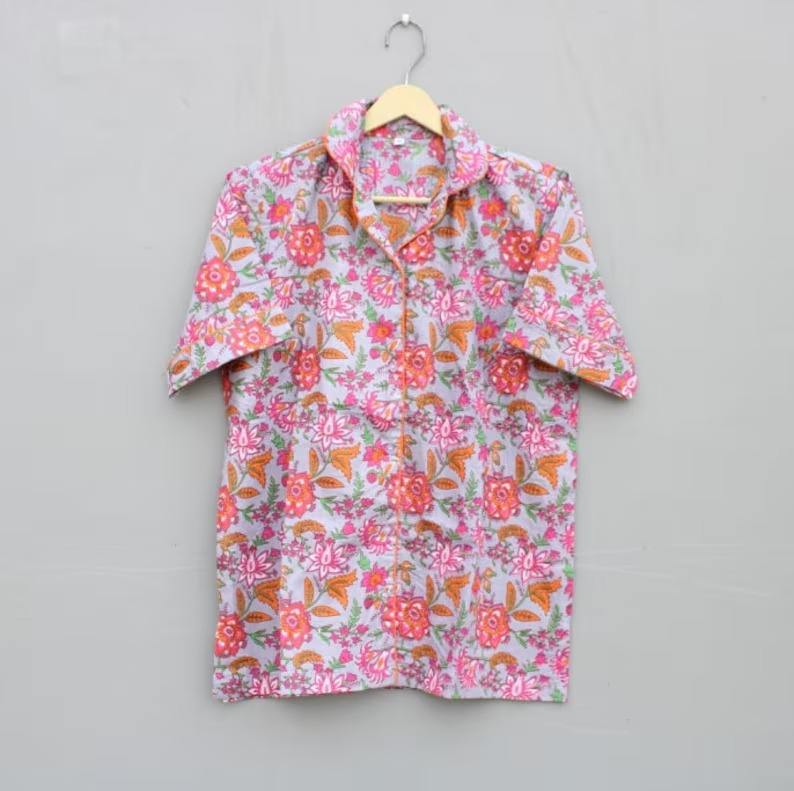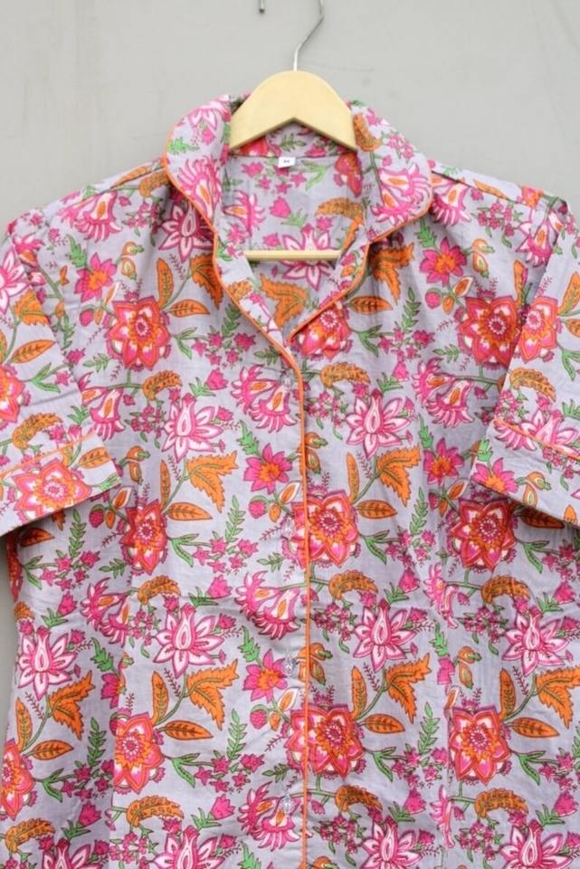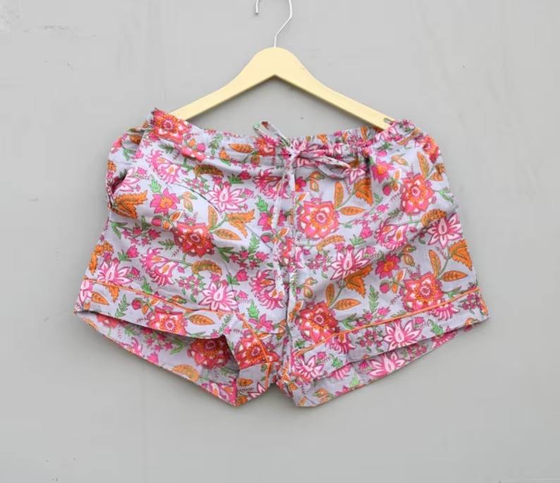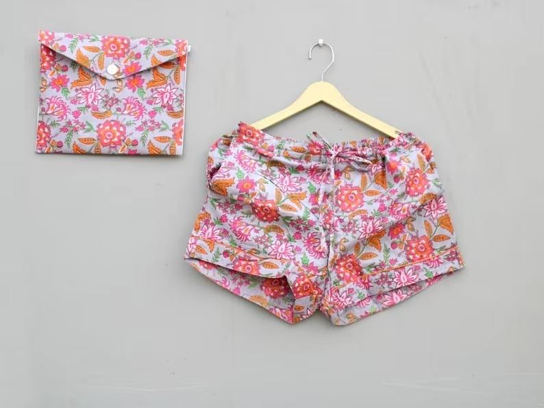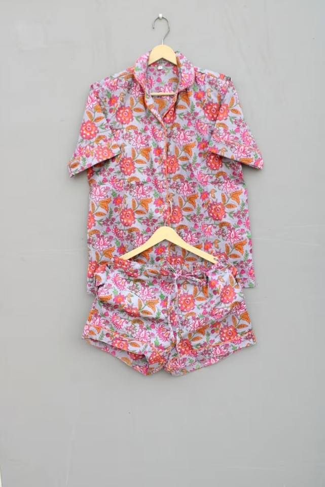 Ensemble short de pyjama en coton imprimé fait à la main confortable XS vêtements de nuit floraux vêtements de nuit d'été et cadeau pour elle pour un usage domestique