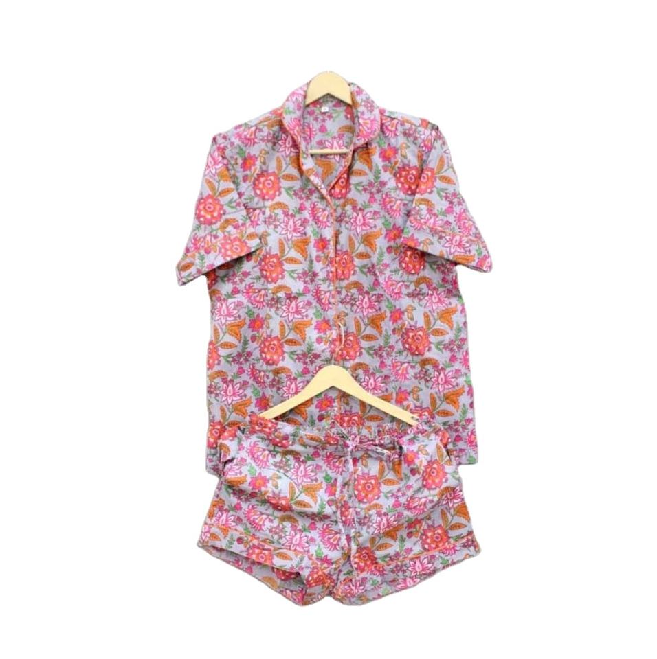 Handmade Printed Cotton Pajama Shorts Set Comfortable XS Floral Nightwear Summer Sleepwear and Gift for Her for Home Use