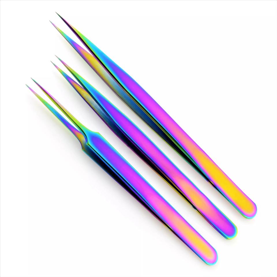 Pince à épiler pour Extension de cils, fait à la main de qualité professionnelle, multi-arc-en-ciel, revêtement Plasma, acier inoxydable, droit _ incurvé
