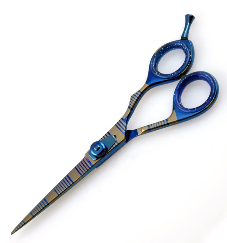 Ciseaux de salon professionnels faits à la main de 5.5 pouces Ciseaux de beauté en acier inoxydable tranchants avec revêtement au plasma bleu