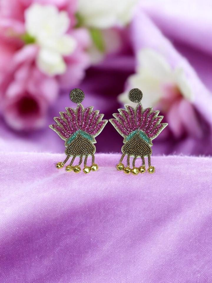 Boucles d'oreilles de football en perles violettes faites à la main, broderie de perles rouges pour le jour du match, bijoux en perles de rocaille, JAVED HANDICRAFTS modèle JH-2026 Etsy