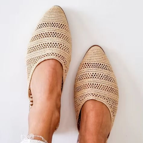 Mules en raphia faites à la main : Pantoufles d'été marocaines