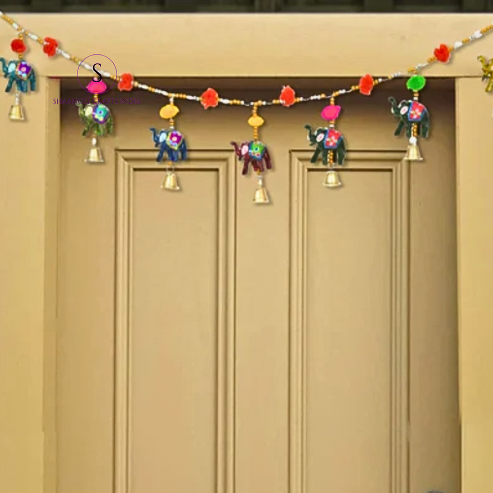 Bandarwal mural de porte éléphant du Rajasthan fait à la main avec des motifs gotta et cloche pour la décoration des saisons de la maison et des festivals