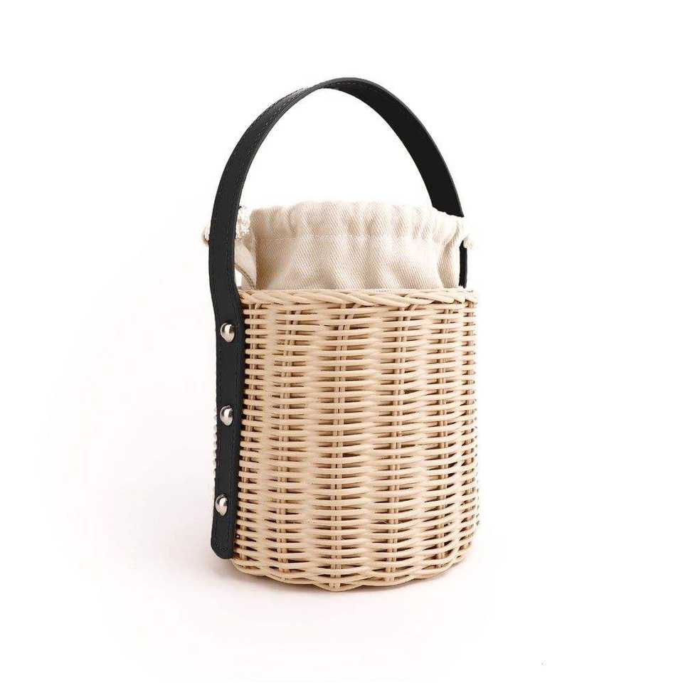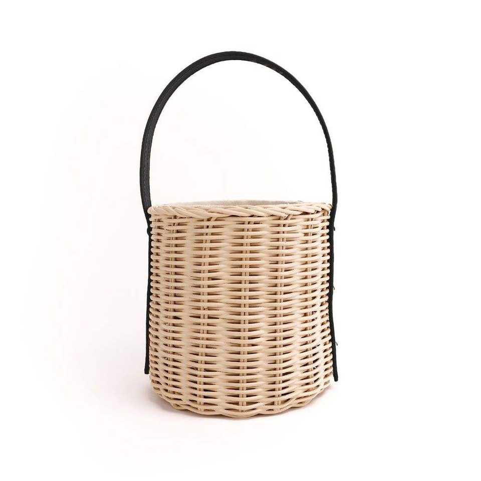 Sac seau en rotin fait main, en fibre naturelle, avec poignée en cuir et cordon de serrage, pour usage quotidien et pique-nique, fabriqué au Vietnam