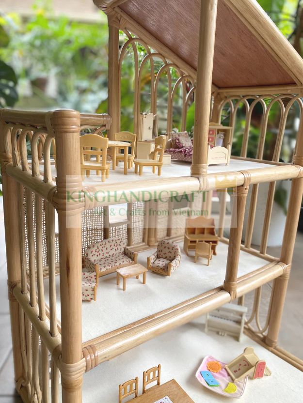 Maison de poupée en rotin fait à la main, accessoires de meubles, jeu pour enfants et espace de jeu, décoration, vente en gros