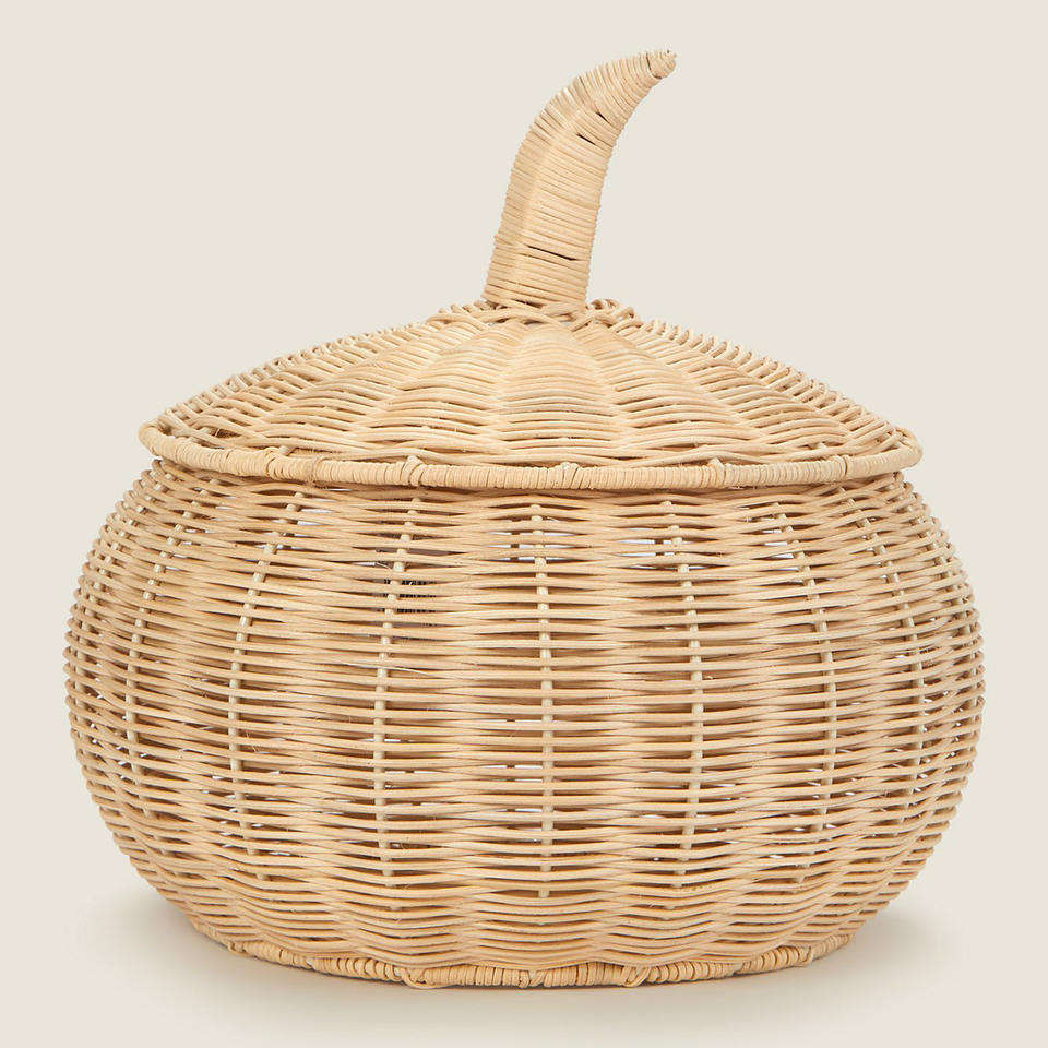 Panier citrouille en rotin fait main décor d'Halloween ornement de Festival d'automne rustique pour la fête à la maison affichage saisonnier fabriqué au Vietnam