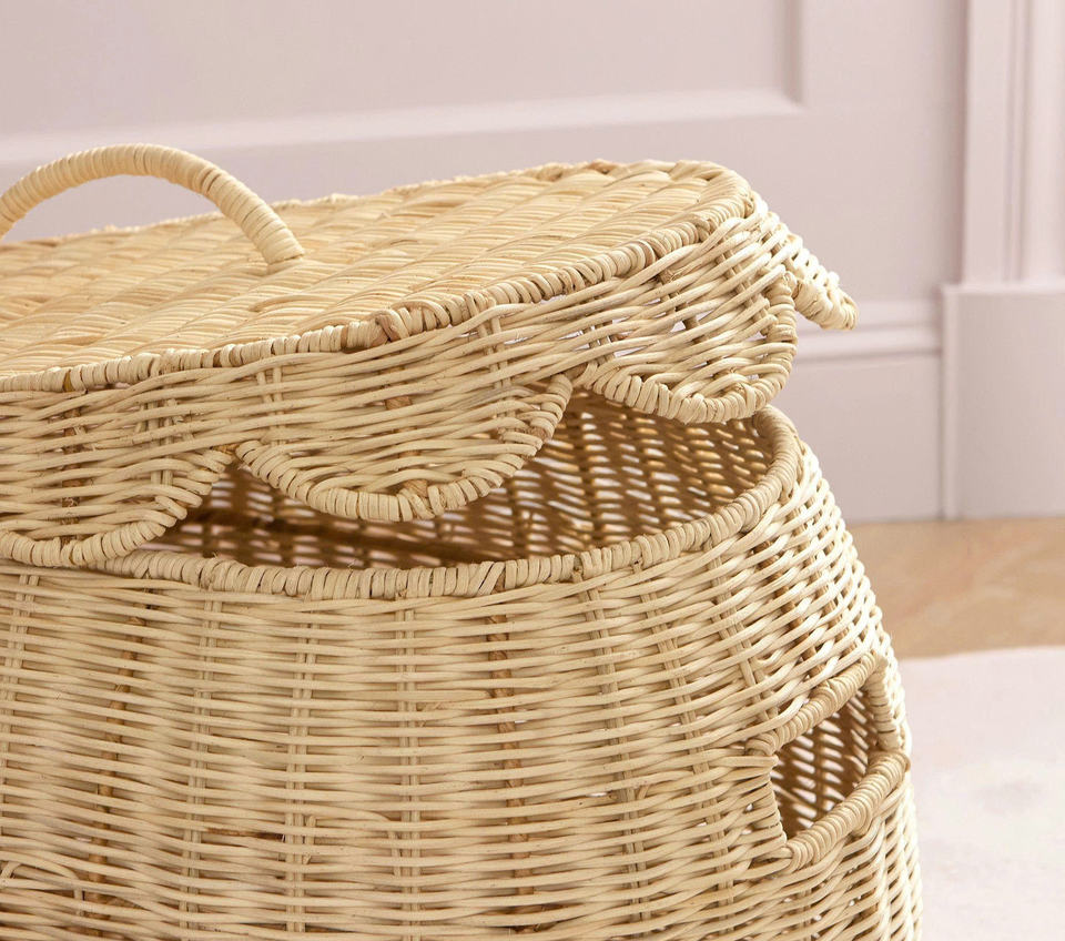 Panier de rangement en rotin fait main avec couvercle, bac de rangement en osier pour jouets, linge, décoration de chambre d'enfant, solution de rangement pour la maison, en provenance du Vietnam