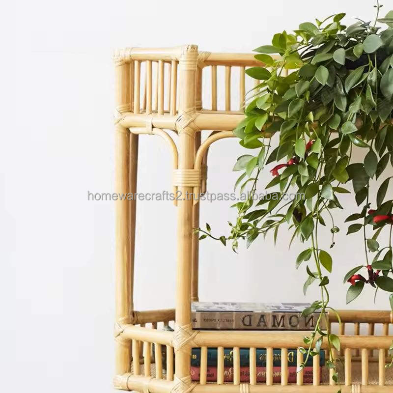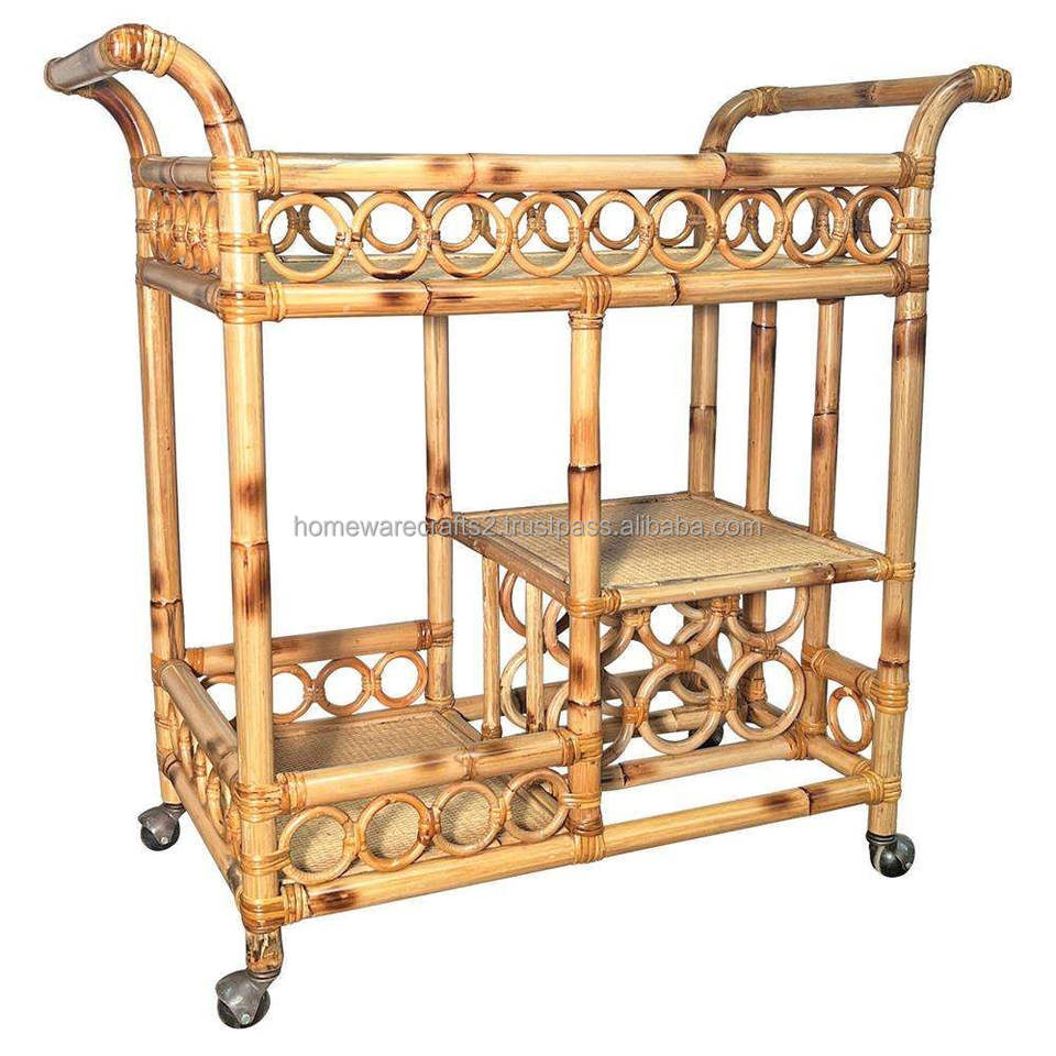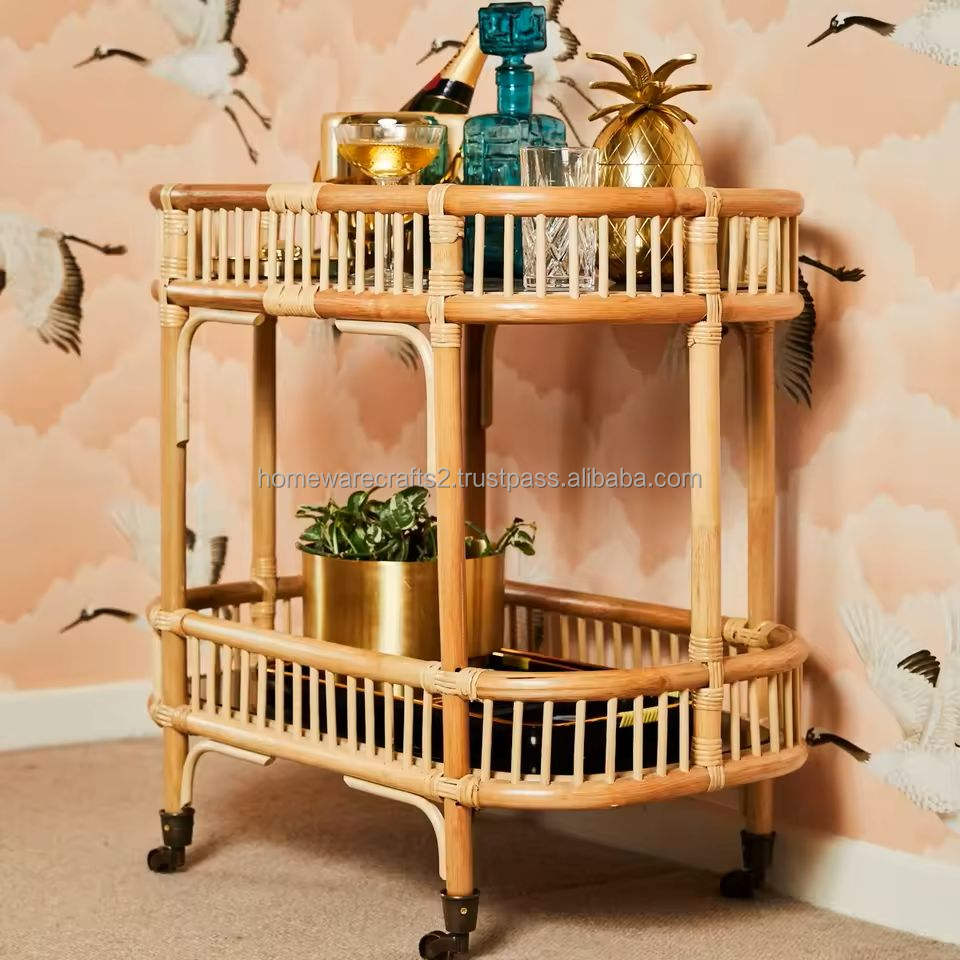 Chariot en rotin fait main, chariot de service décoratif écologique, personnalisable et durable, Vietnam